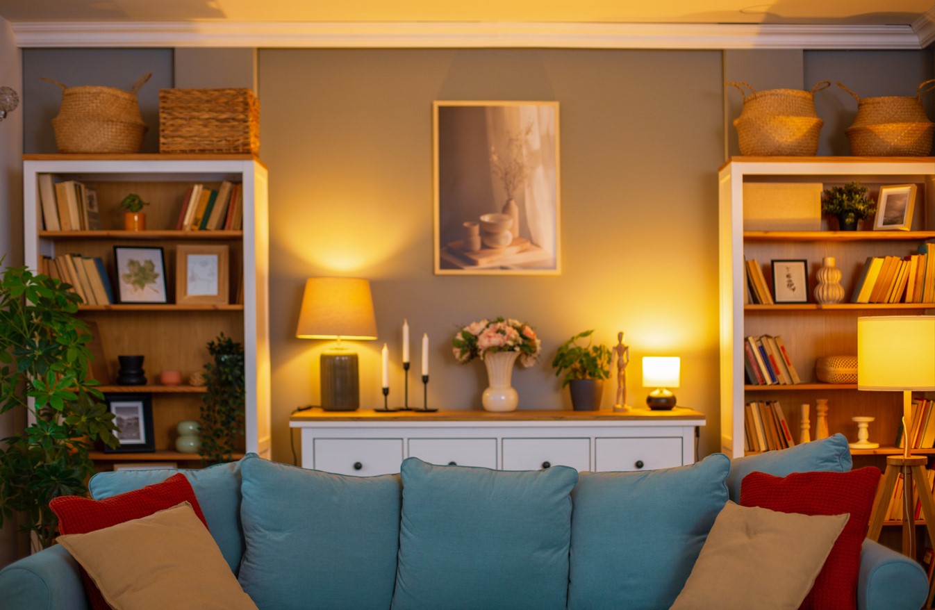 No matter how many textures you layer, they won’t come alive without the right lighting. Swap out overhead glare for softer sources: a warm-glow floor lamp, a table lamp with a linen shade, even a few candles on a nearby tray. This layered lighting helps your throws, rugs, and fabrics pop with warmth and dimension—just the ambiance a Mid-Michigan fall evening calls for.