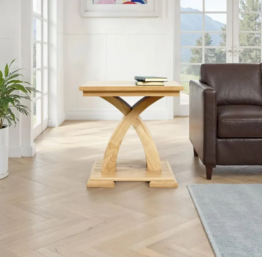 Infuse your living space with modern elegance using the Warm Ash Anthology End Table. This distinctive piece features a unique curved base design, where two elegantly arched legs cross at the center to form an eye-catching X-shape — adding a sculptural element to any room.