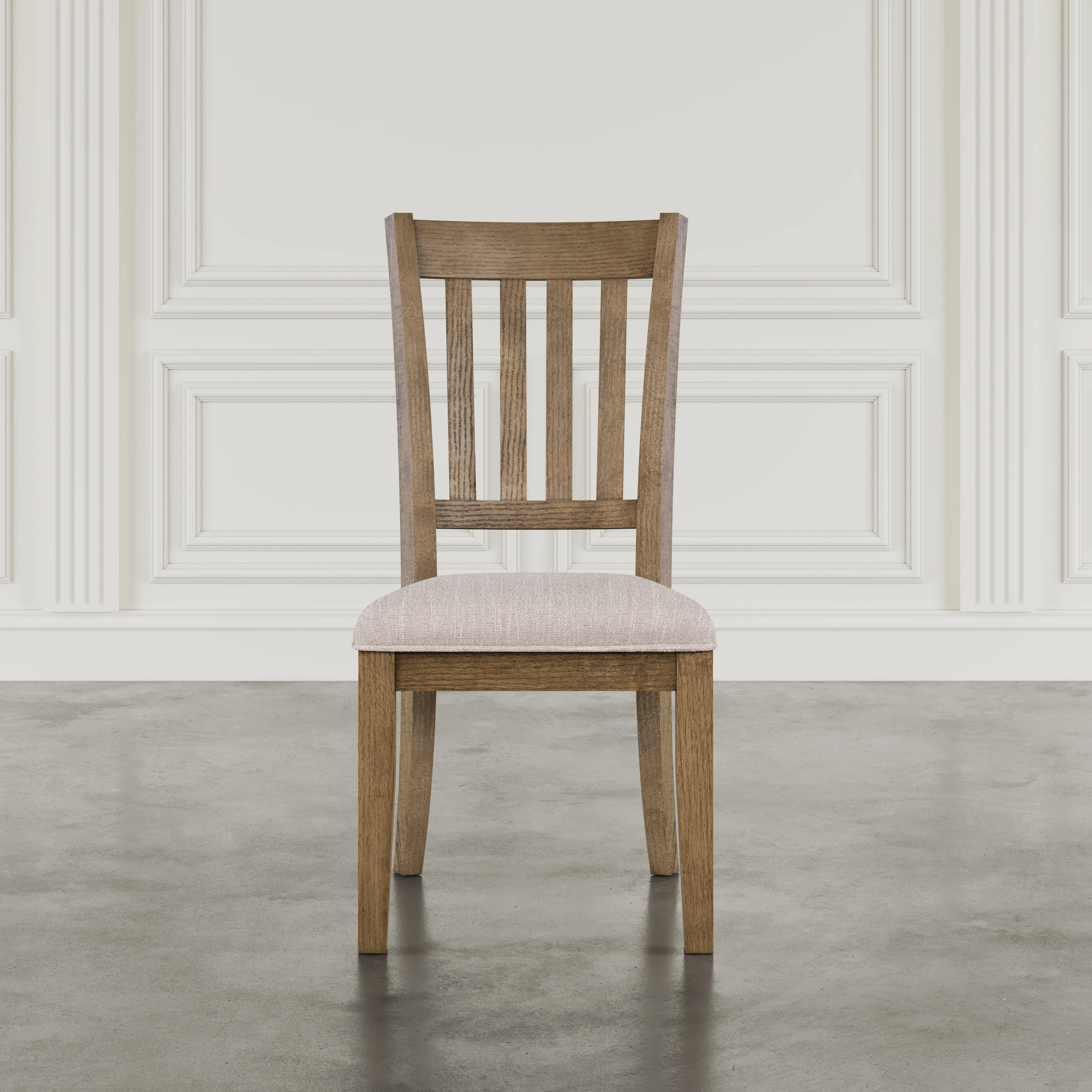 - -Set of 2 slatback dining chairs -Polyester upholstered seat with Flax finish for comfort and durability -Rubberwood and Veneer Frame -Available in Cascade Oak and Arbor Oak finishes -Assembly required with included hardware pack - -