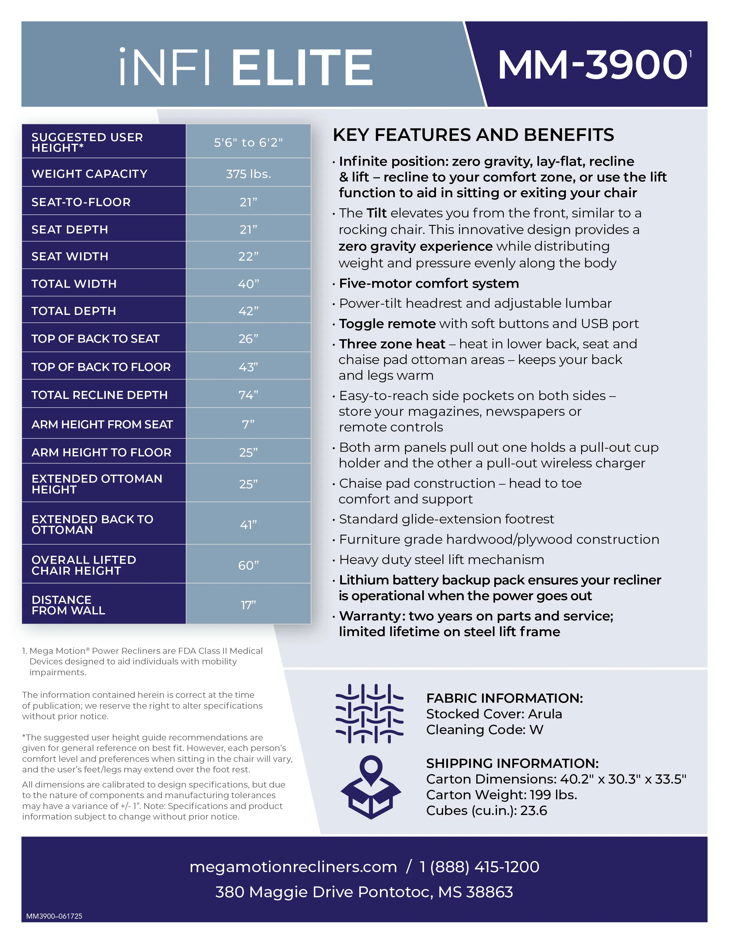 Zero gravity, lay-flat, recline & lift ‒ recline to your comfort zone, or use the lift function to aid in sitting or exiting your chair; all at the touch of button with our ergonomic toggle button controller.