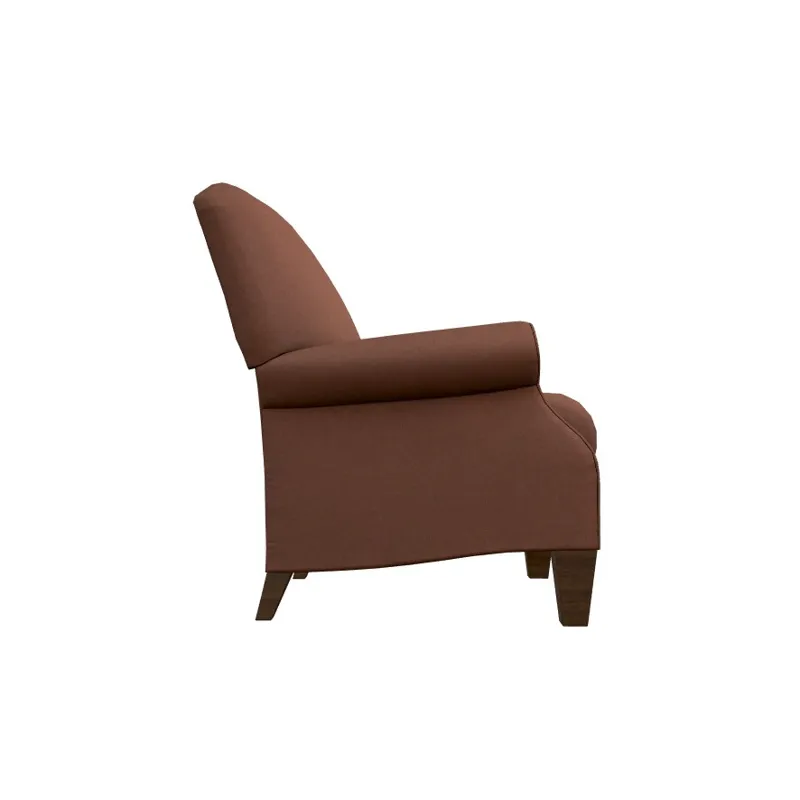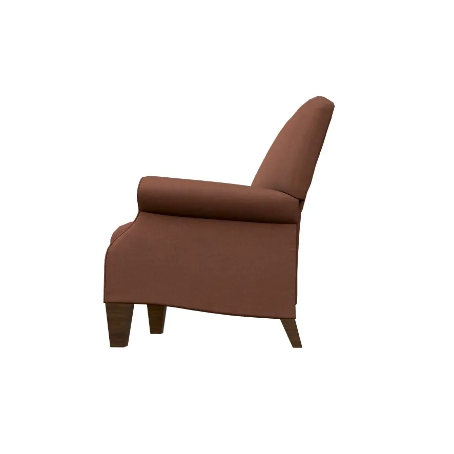 The simple design of the Charlotte High Leg Reclining Chair makes it a beautiful complement to any room. It features elegantly tapered wood legs and sophisticated arms that are both rolled and flared. A solid foam back gives Charlotte a clean and structured appearance, while providing support for your back. And with its classic looks, no one would believe it’s a recliner. Simply push back to enjoy two positions of instant reclining comfort.