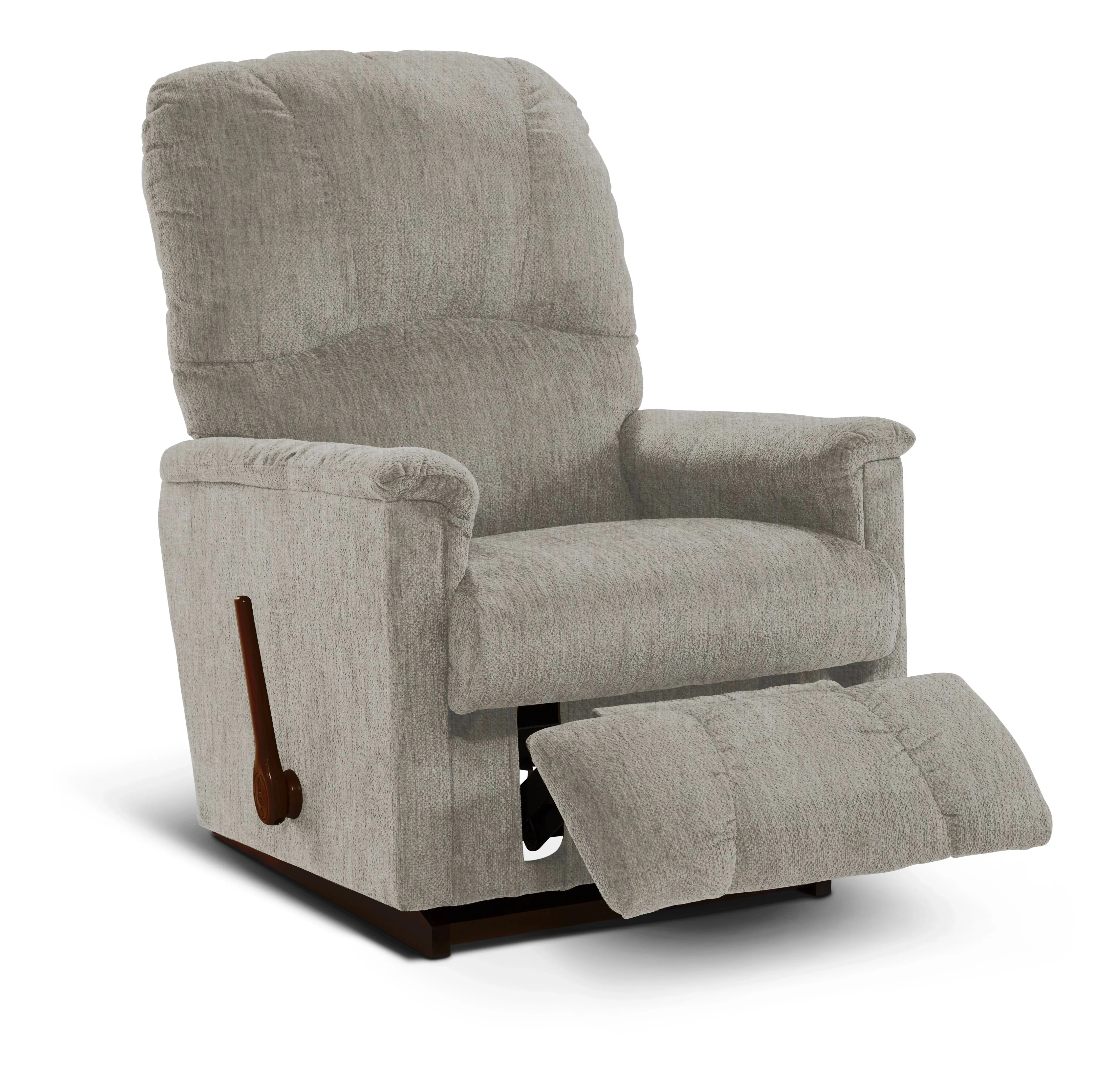 Relaxation comes easily with our Mercury Rocking Recliner. Hand crafted for luxurious comfort, it features a plushly padded chaise seat and legrest, pillow top arms and a channel-stitched back that maintains shape and support year after year. Simply use the convenient handle on the outside arm to raise the legrest for reading, relaxing or watching TV. When you're not reclining, it's a relaxing rocker with a smooth, graceful motion.