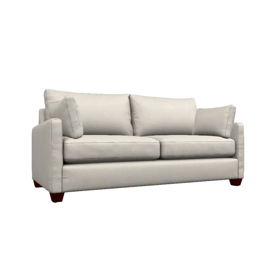 - Slender track arms with loose kidney toss pillows